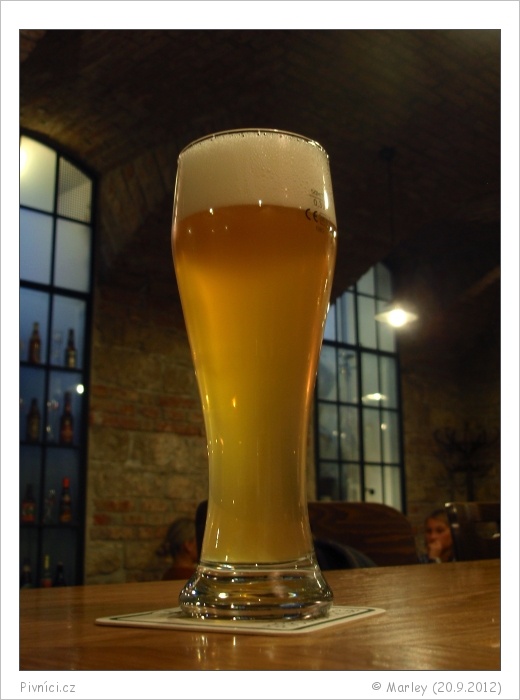Slámová až světle zlatá barva, velmi zakalené, pěkná bílá pěna, celkem drží,Vůně (3 - dobré):