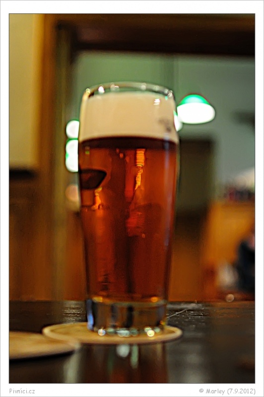 Jantarová barva, čiré, hezká bílá pěna.Vůně (3,5 - velmi dobré):