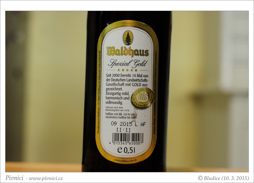 Světle zlatá barva, čiré, slušná bílá pěna, celkem drží.Vůně (3,5 - velmi dobré):