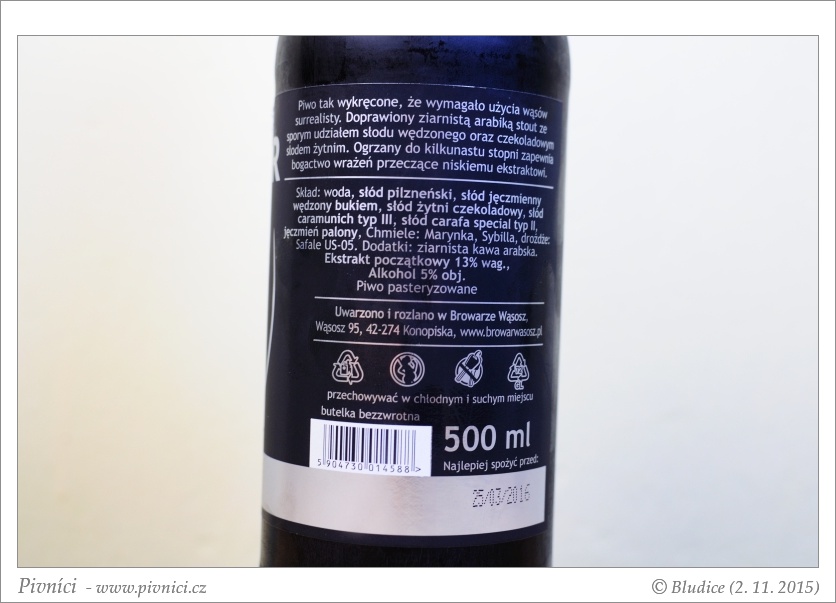Výborné výrazné a pěkně vyvážené pivo. Skvěle se pije.Minimální trvanlivost: 25. března 2016