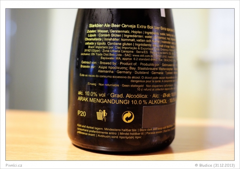 Chutné usrkávací pivo s krásným dlouhým dozníváním. Škoda, že není méně sladké. Po ohřátí se moc pěkně rozvine a sladkost už není tak výrazná.Minimální trvanlivost: 1.2.2015