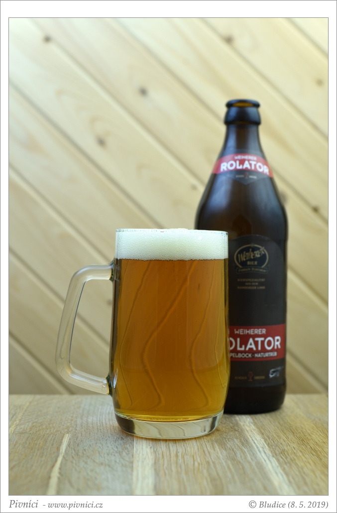 Temně zlatá barva, téměř čiré. Pěkná světlá pěna, slušně drží.Vůně (3,5 - velmi dobré):