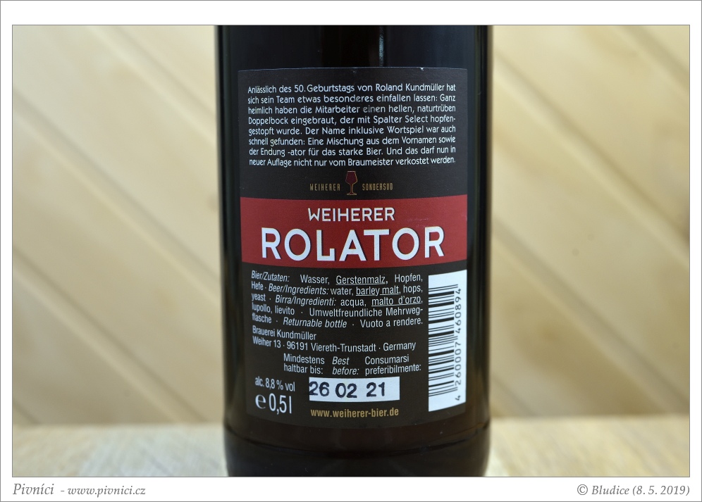 Trochu osobitý, ale chutný doppelbock, velmi dobře se popíjí.Minimální trvanlivost: 26. února 2021