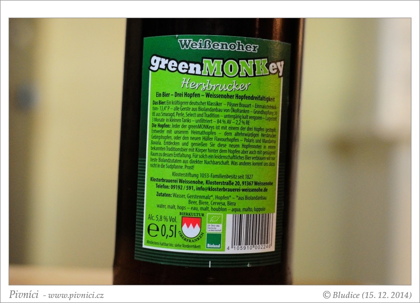 Slámová barva, lehce zakalené, pěkná bílá pěna, celkem drží.Vůně (4 - výborné):