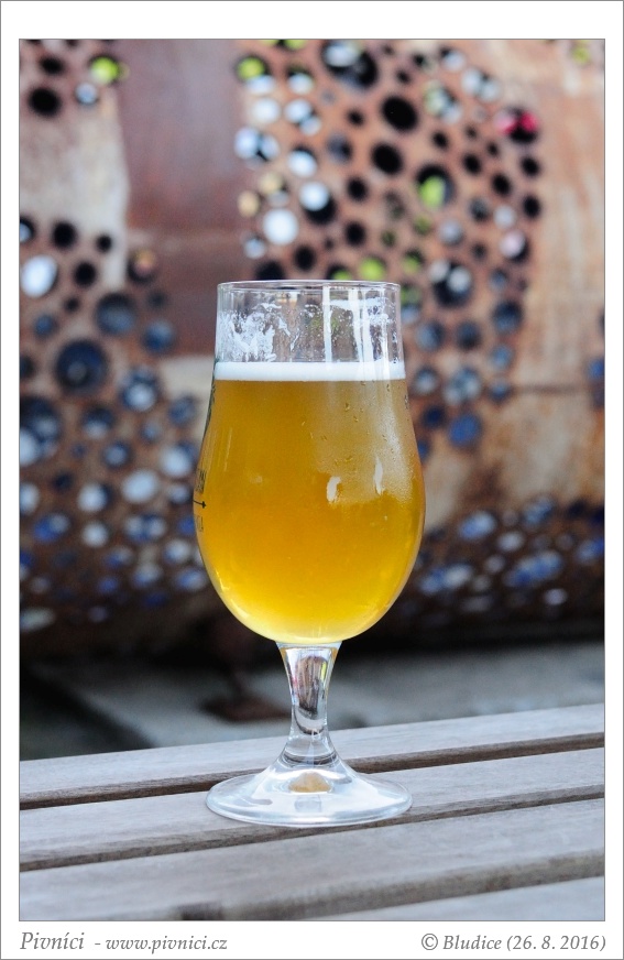 Zlatá barva, lehce zakalené, slušná bílá pěna, celkem drží.Vůně (2 - průměr):