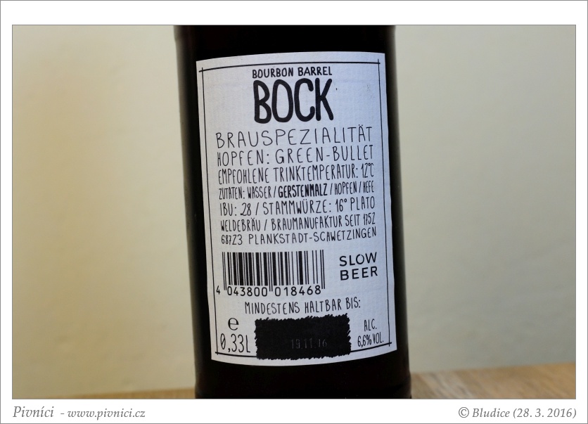 Sice trochu jednoduché, ale fajn pivo s výraznou chutí bourbonového sudu.Minimální trvanlivost: 19. listopadu 2016