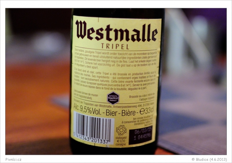 Chutný a pěkně nachmelený Tripel. Výborně se usrkává.Minimální trvanlivost: 14.11.2015