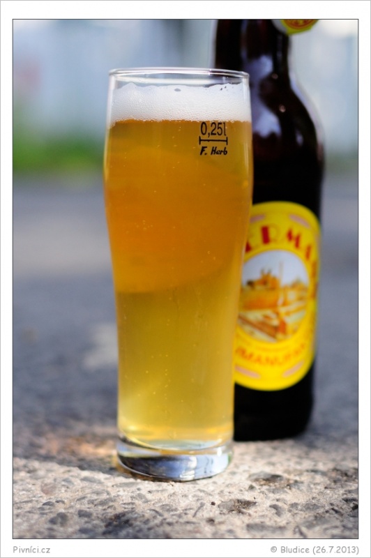 Barva slámová, zakalené. Pěkná hustá průměrně stabilní pěna.Vůně (3 - dobré):