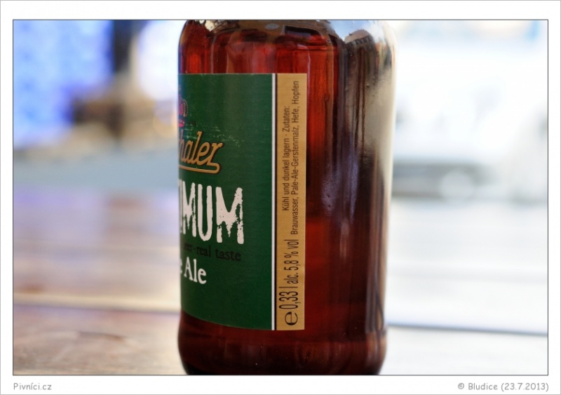 Skvěle pitelný čistý Pale Ale. Osvěžující, vydařený.Minimální trvanlivost: 6.12.2013
