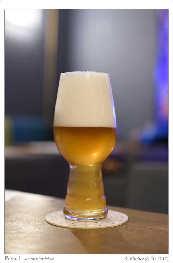 Světle zlatá barva, čiré, vysoká světlá pěna, dobře drží.Vůně (3 - dobré):