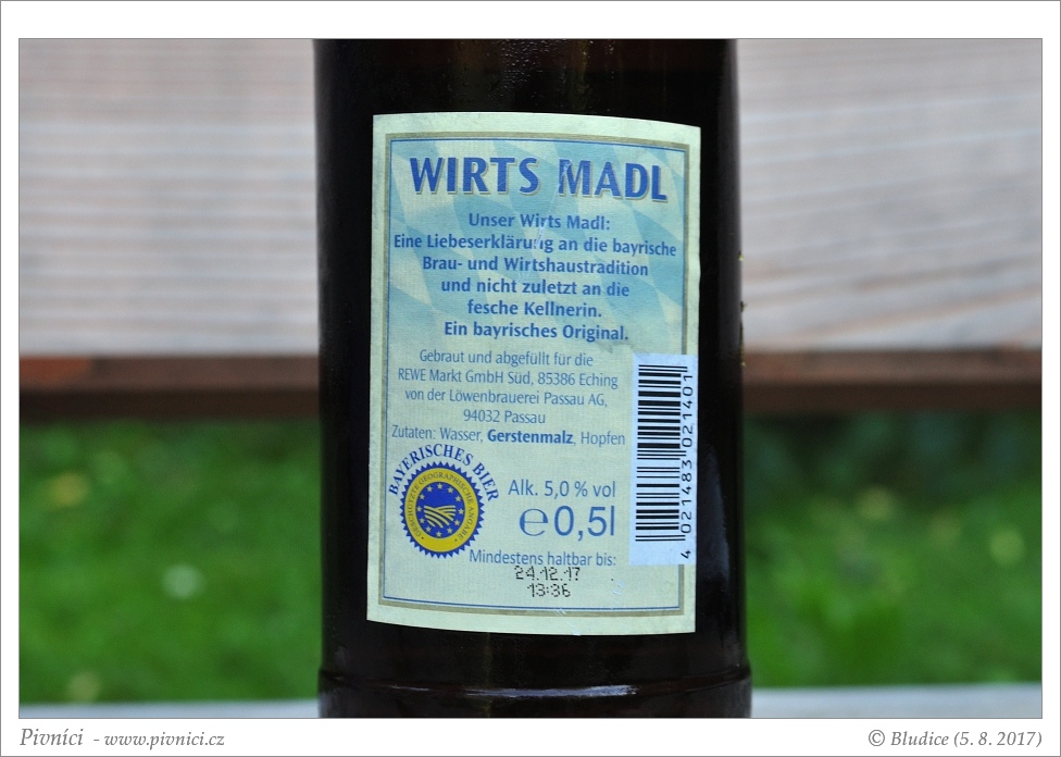 Sladovější pivo, průměrně pitelné.Minimální trvanlivost: 24. prosince 2017