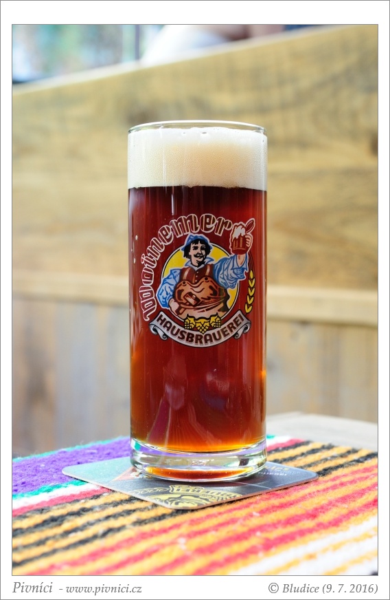 Temně měděná až mahagonová barva, lehce zakalené, pěkná světlá pěna s okrovým nádechem, dobře drží.Vůně (3 - dobré):