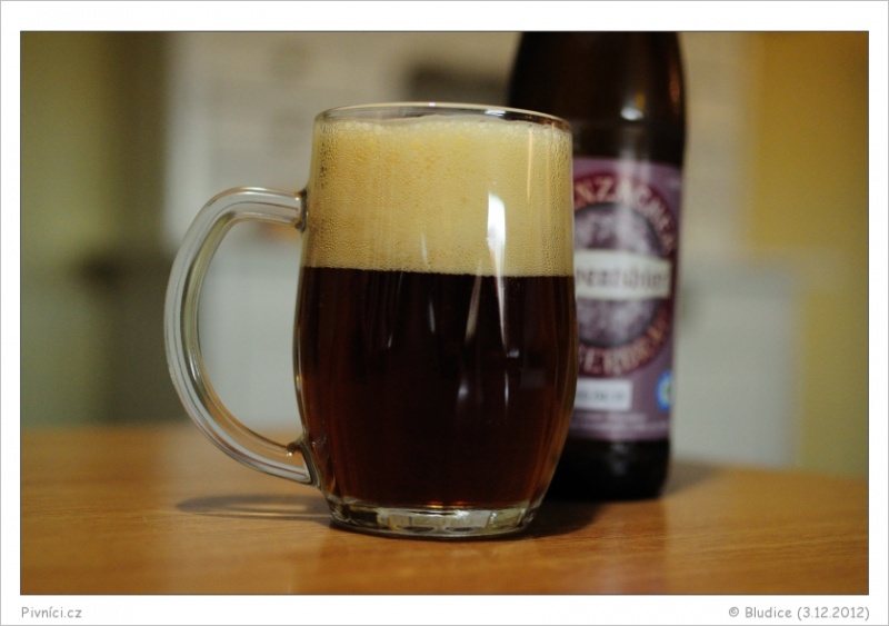 Barva tmavě měděná, lehce zakalené. Pěkná hustá stabilní pěna, světle okrové barvy.Vůně (2 - průměr):