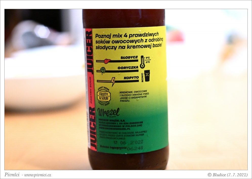 Chutné výrazně ovocné pivo. Velmi dobře se popíjí.Minimální trvanlivost: 17. června 2022