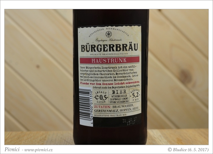 Chutný sladovější Kellerbier, velmi dobře se popíjí.Minimální trvanlivost: 31. října 2017