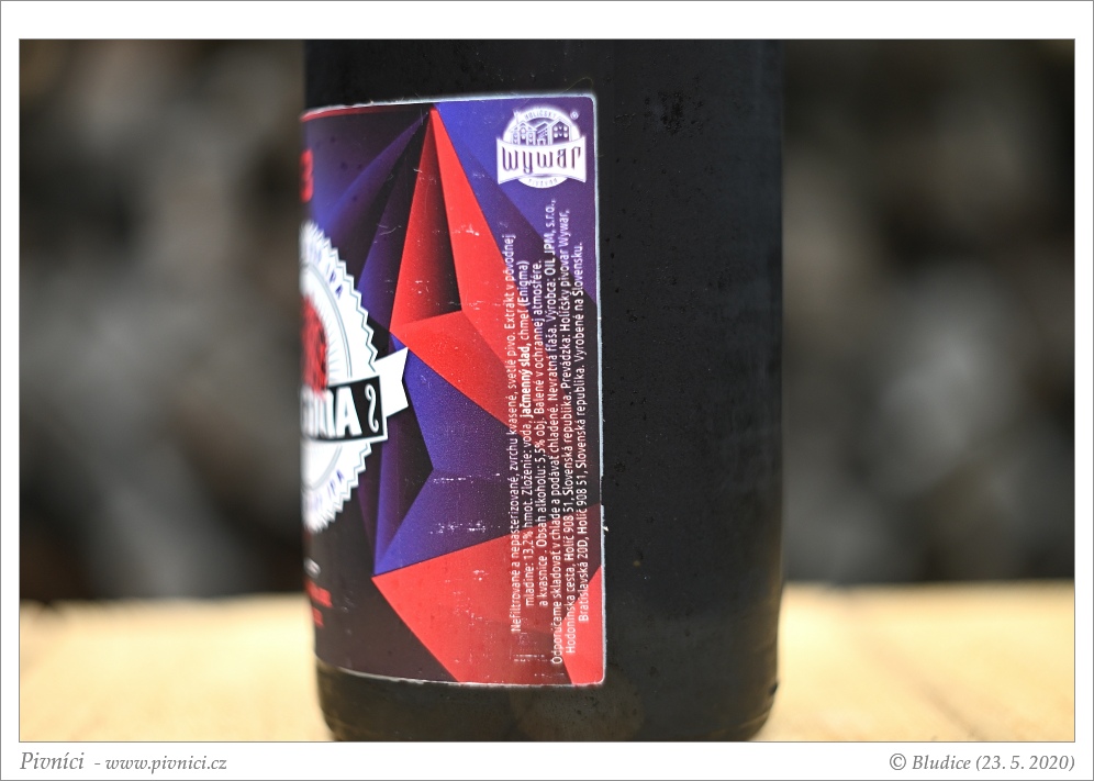 Temně zlatá barva, čiré. Pěkná světlá pěna, dobře drží.Vůně (2,5 - lehce nadprůměr):