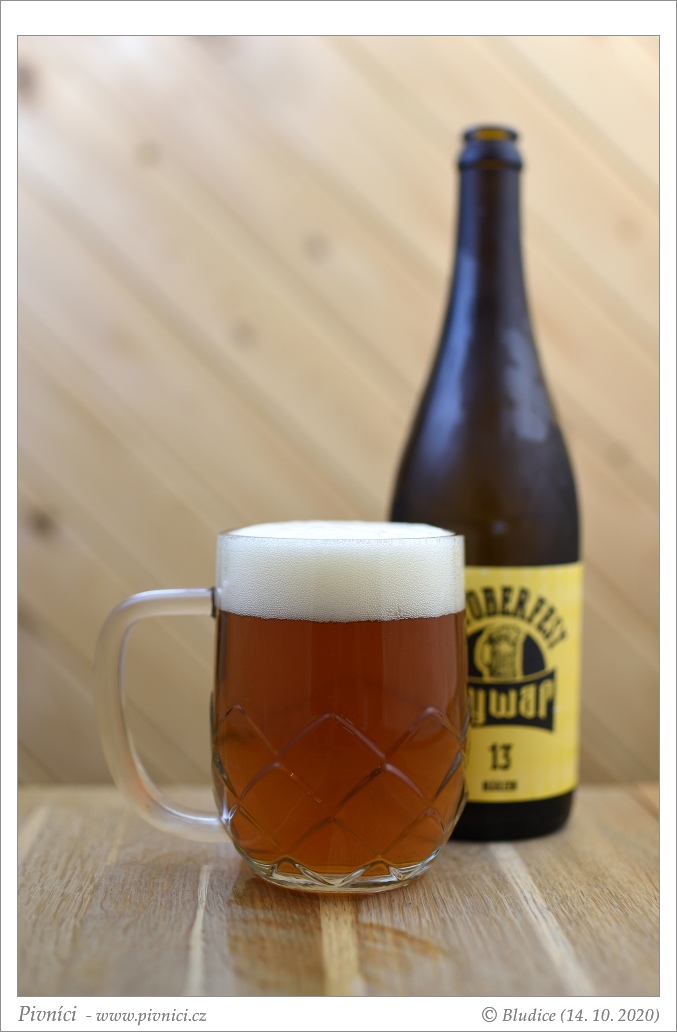 Zlatá barva, lehce zakalené. Pěkná světlá pěna, dobře drží.Vůně (1 - hnusné):