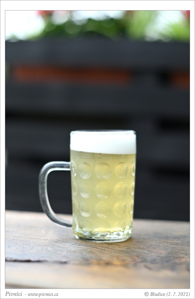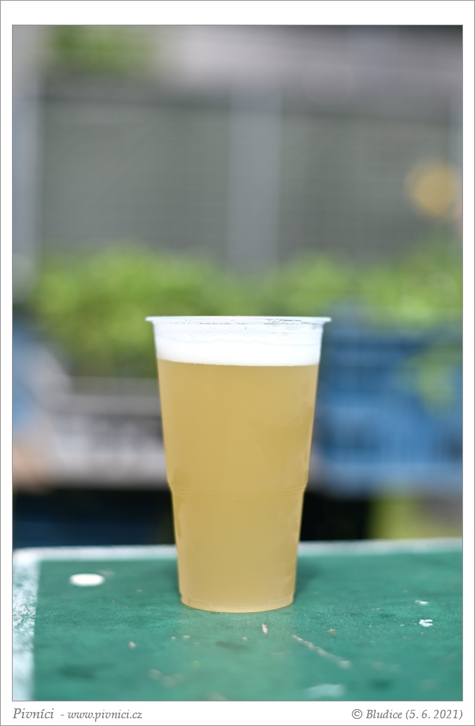 Světle slámová barva, lehce zakalené. Pěkná světlá pěna, dobře drží.Vůně (3,5 - velmi dobré):