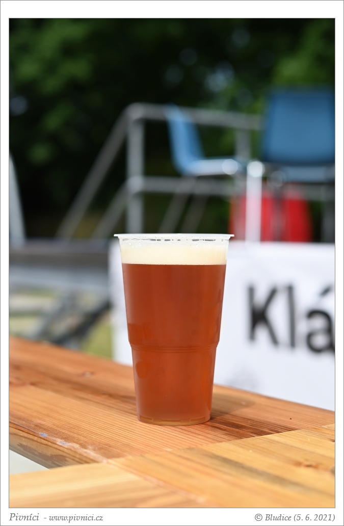 Měděná barva, téměř čiré. Pěkná světlá pěna, dobře drží.Vůně (3 - dobré):