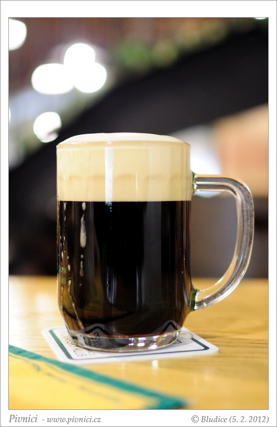 Barva velmi tmavě hnědá, téměř černá s narudlým nádechem. Velmi hustá a velmi stabilní pěna světle béžové barvy.Vůně (3,5 - velmi dobré):