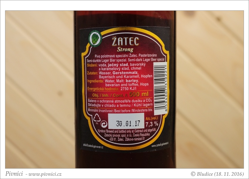 Chutné sladovější pivo. Dobře se pije.Minimální trvanlivost: 30. ledna 2017