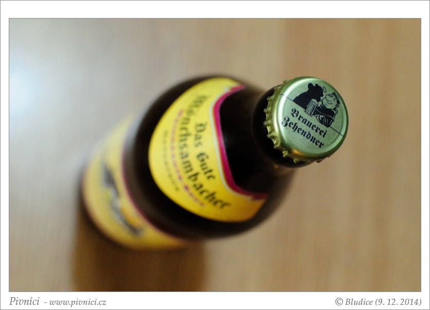Zlatá barva, lehce zakalené, pěkná světlá pěna, dobře drží.Vůně (3,5 - velmi dobré):