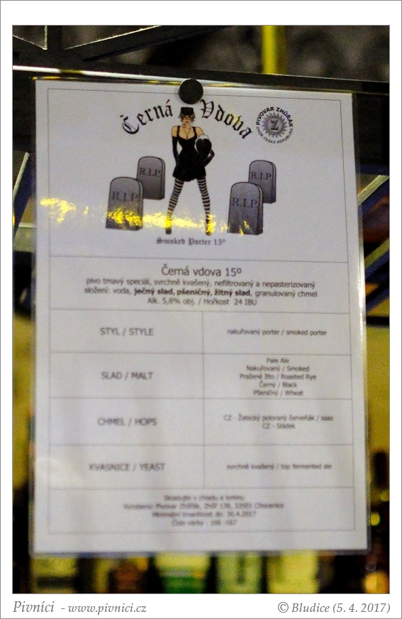 … Od Zhůřáka jsme potkali silnější verzi jeho Černé vdovy, šestnáctku nakuřovaného portera, zřejmě pro odlišení doplněnou …