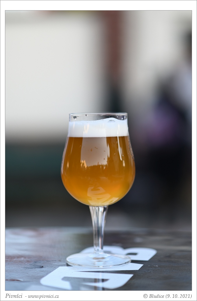 Zlatá barva, středně zakalené. Pěkná světlá pěna, dobře drží.Vůně (3,5 - velmi dobré):