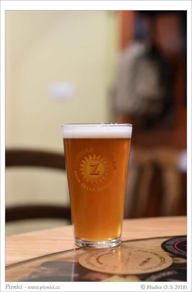 Zlatá barva, lehce zakalené. Pěkná světlá pěna, dobře drží.Vůně (4 - výborné):