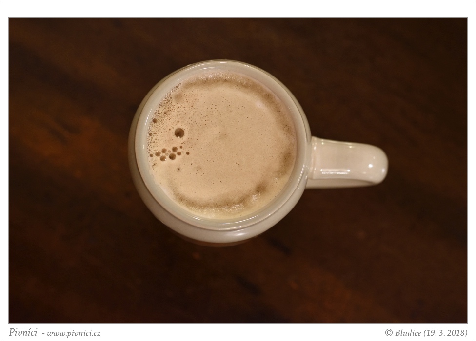 Barva téměř černá. Pěkná hustá stabilní pěna světle béžové barvy.Vůně (3 - dobré):
