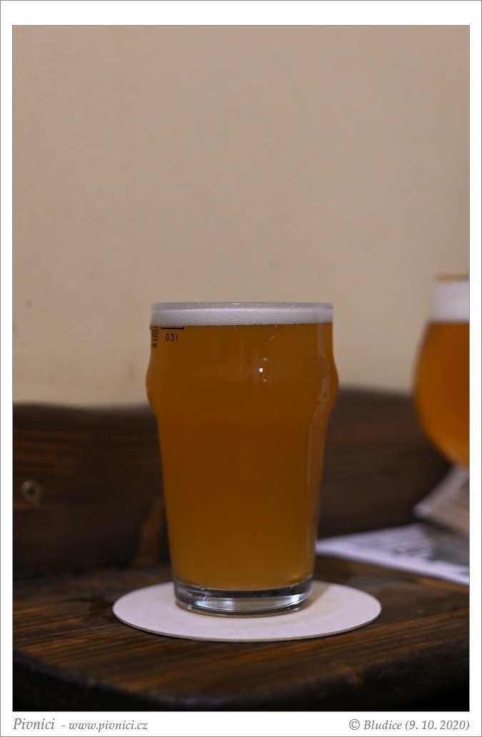Světle zlatá barva, velmi zakalené. Pěkná světlá pěna, dobře drží.Vůně (3,5 - velmi dobré):