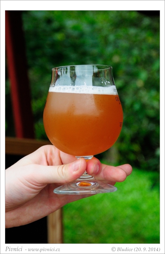 Barva oranžová, silně zakalené. Nižší pěkná hustá celkem stabilní pěna.Vůně (3 - dobré):