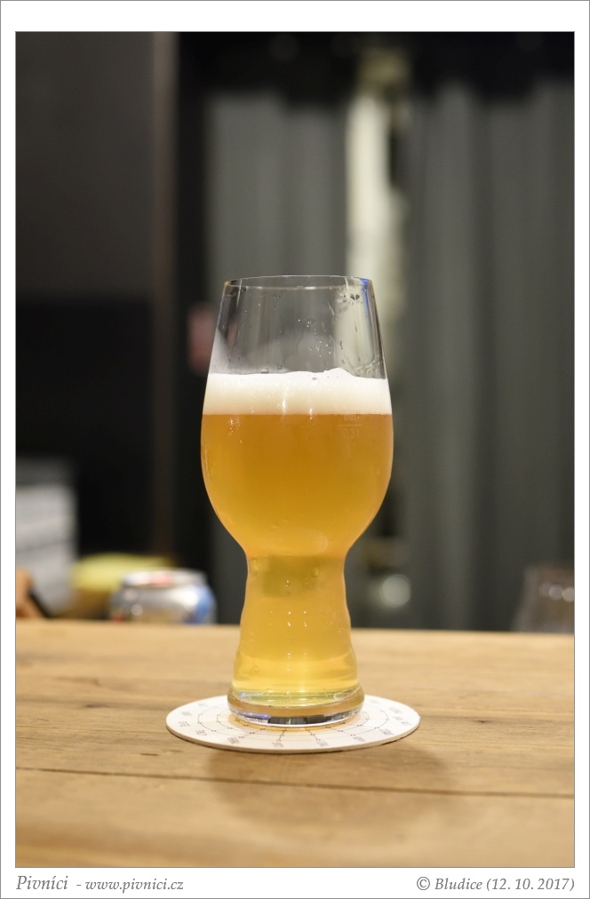 Zlatá barva, lehce zakalené, pěkná světlá pěna, dobře drží.Vůně (2 - průměr):