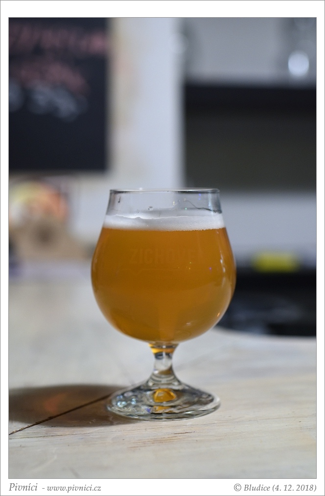 Zlatá barva, lehce zakalené. Pěkná světlá pěna, slušně drží.Vůně (4 - výborné):