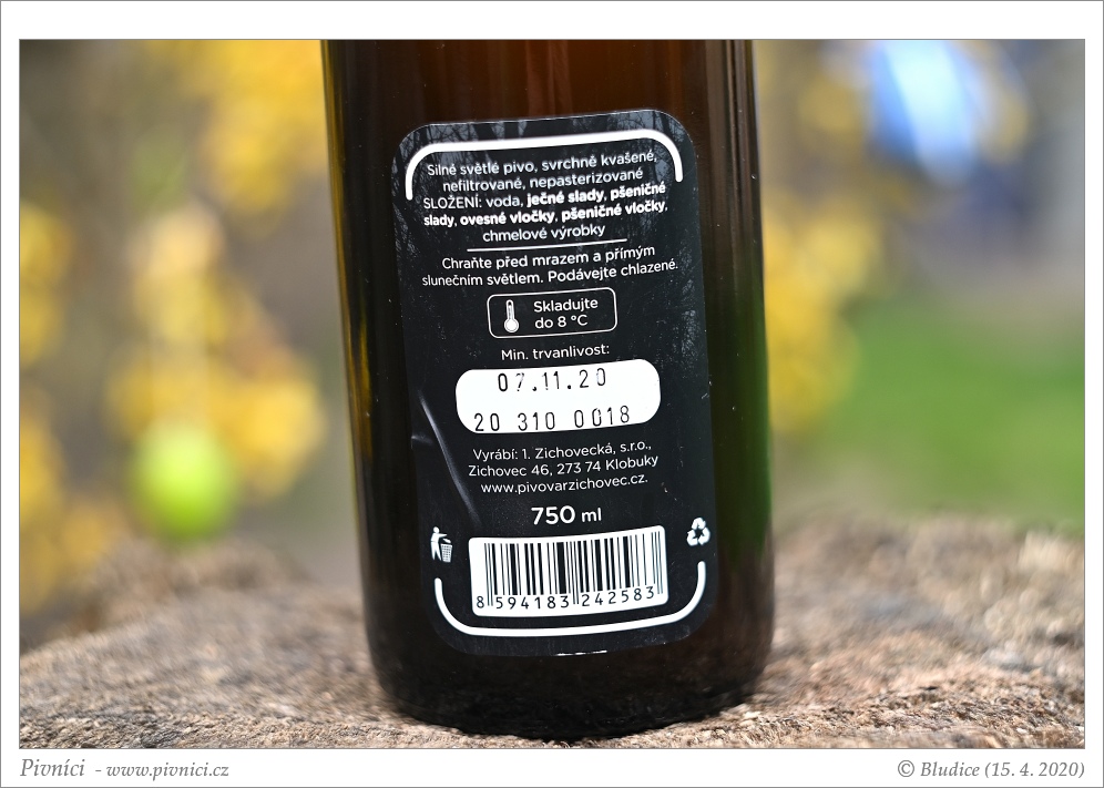 Barva slámová, zakalené. Pěkná hustá stabilní pěna.Vůně (3 - dobré):
