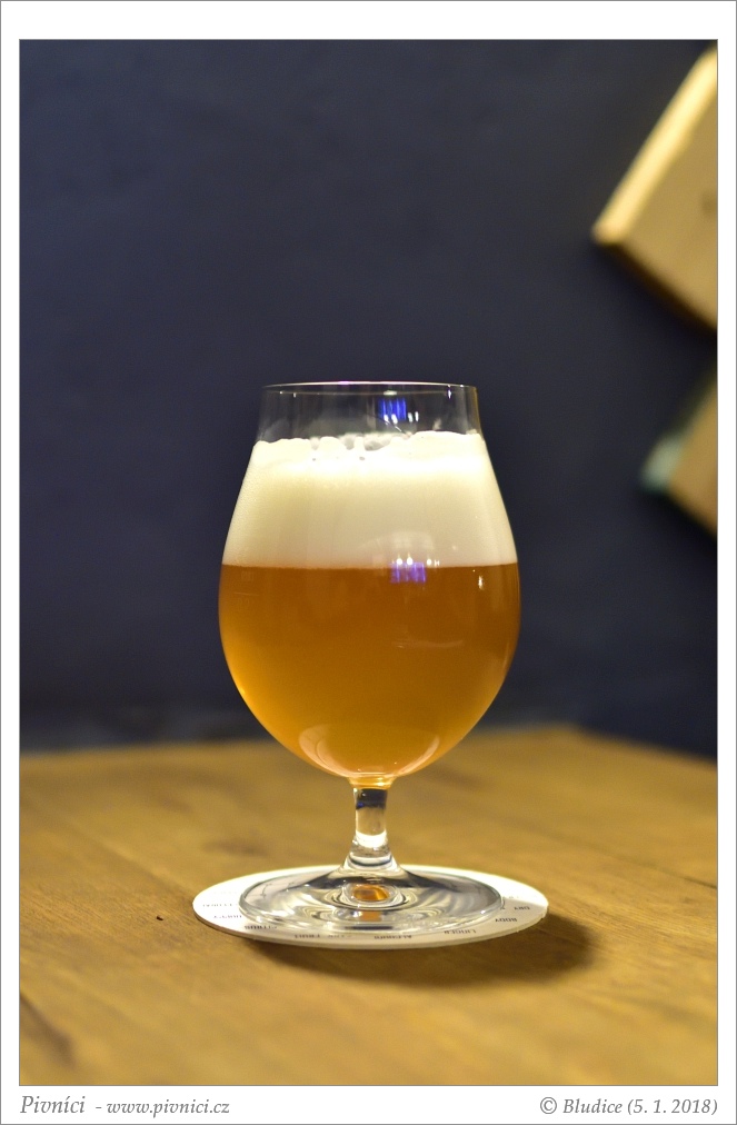 Zlatá barva, lehce až středně zakalené. Pěkná světlá pěna, slušně drží.Vůně (3,5 - velmi dobré):