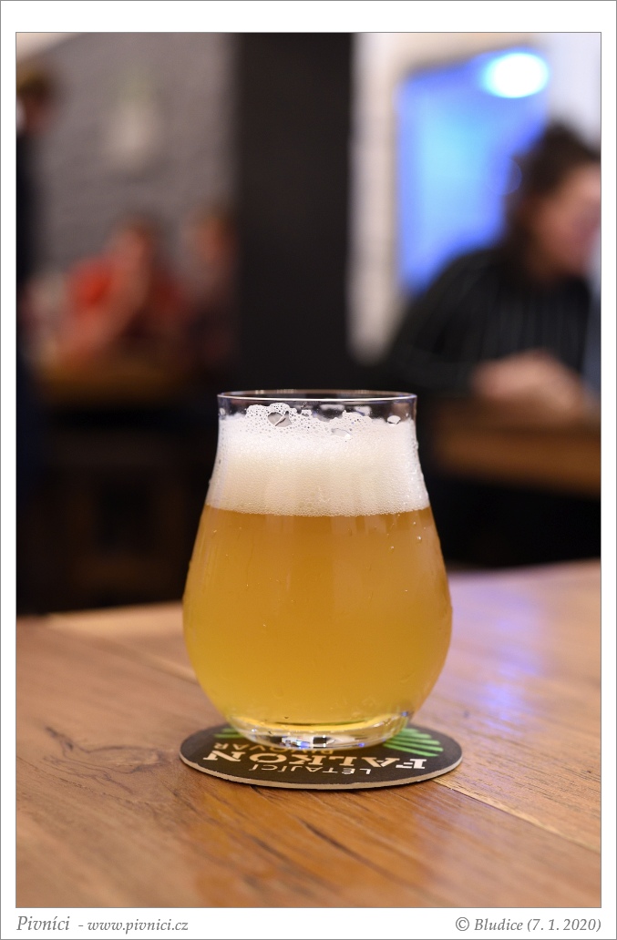 Zlatá barva, více zakalené. Pěkná světlá pěna, dobře drží.Vůně (3,5 - velmi dobré):
