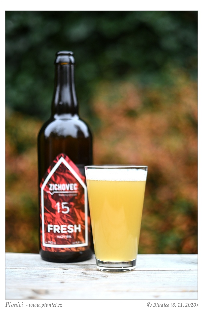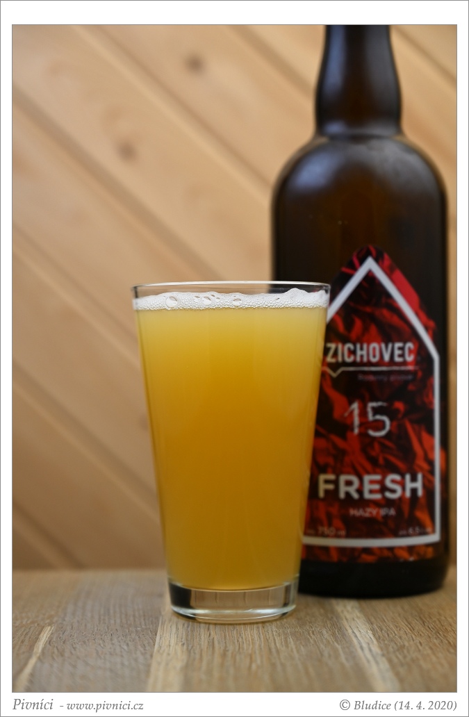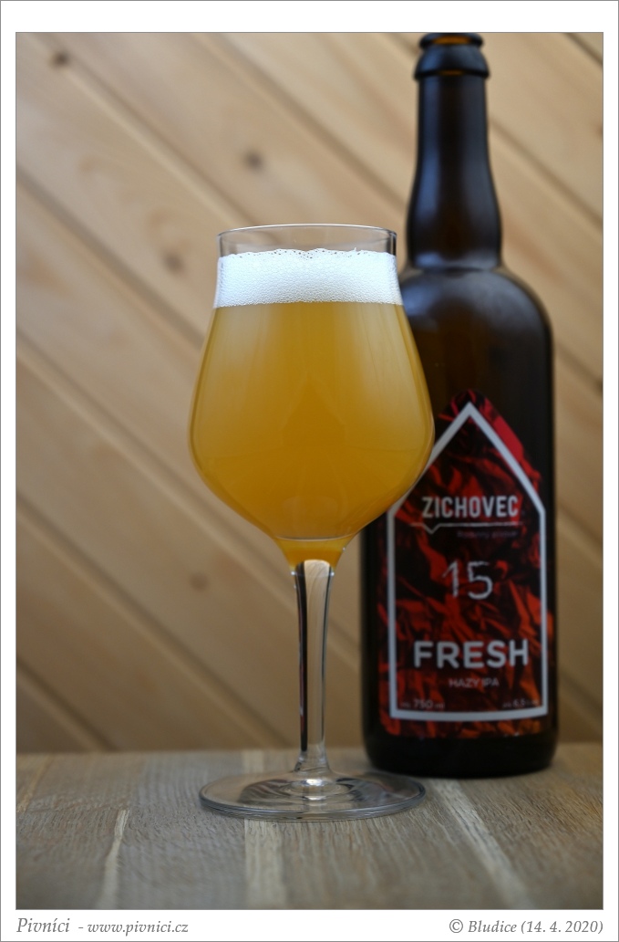 Zlatá barva, velmi zakalené. Slušná světlá pěna, celkem drží.Vůně (3,5 - velmi dobré):