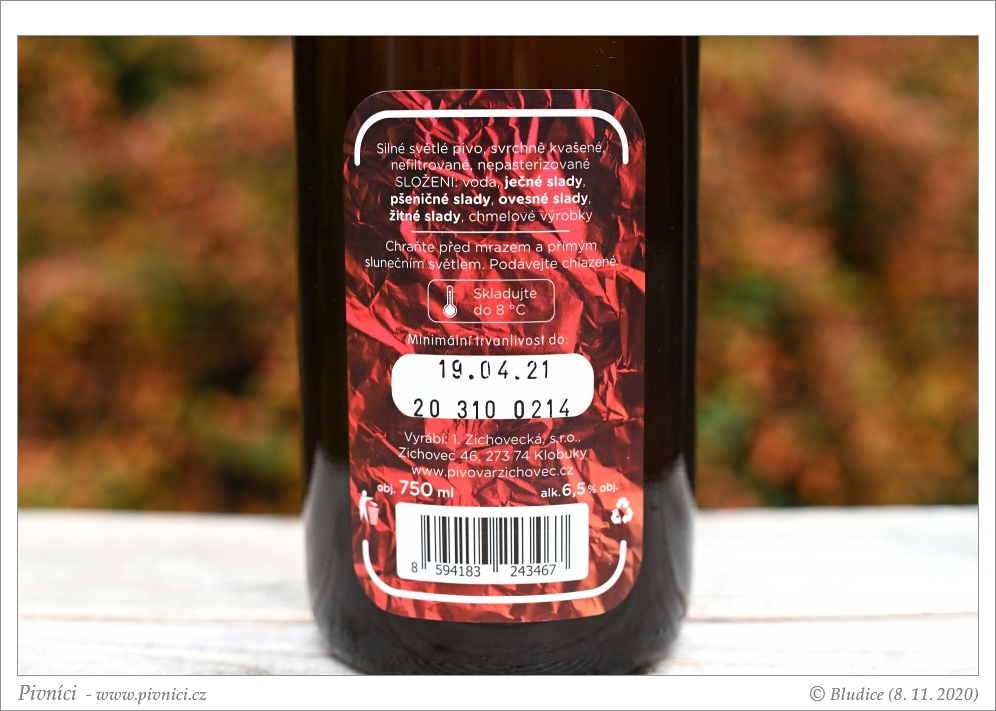 Fajn IPA, velmi dobře pitelná. Ale i tak mi přijde o něco kalnější a kvasnicovější než minule.Minimální trvanlivost: 30. října 2020