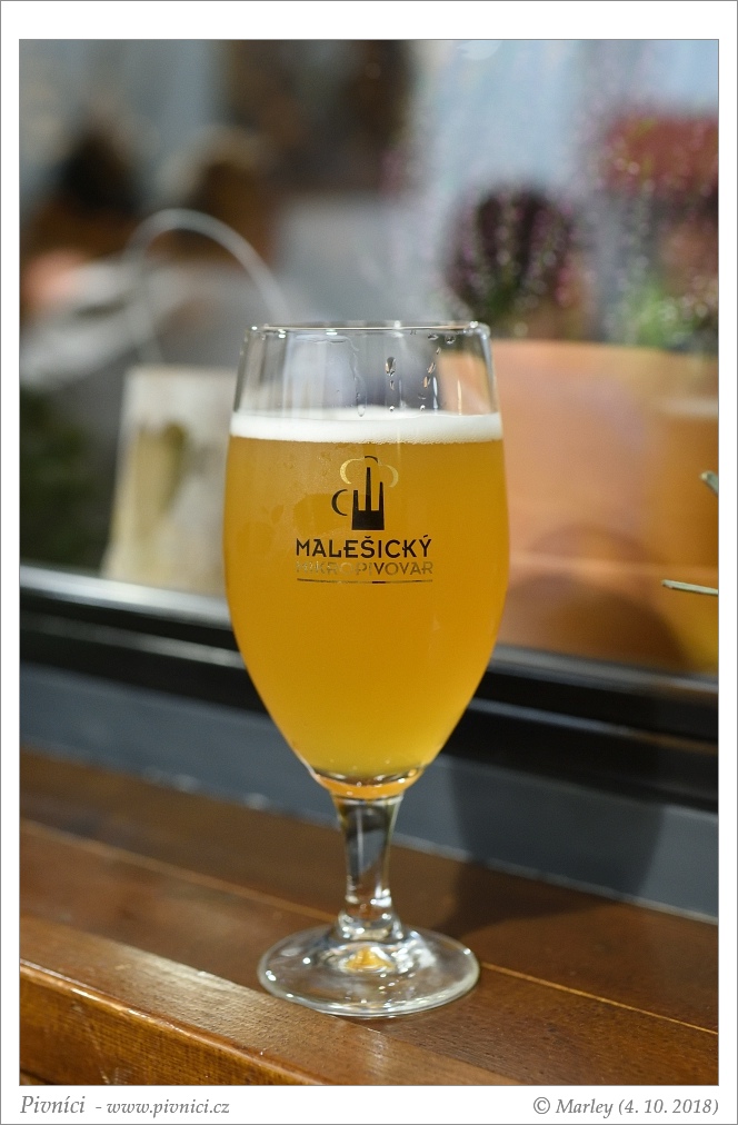 Zlatá barva, velmi zakalené. Nižší světlá pěna, celkem drží.Vůně (3 - dobré):