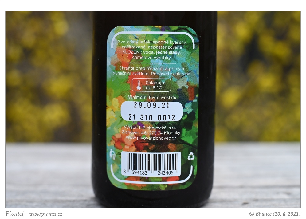Zlatá barva, čiré. Pěkná světlá pěna, dobře drží.Vůně (3,5 - velmi dobré):