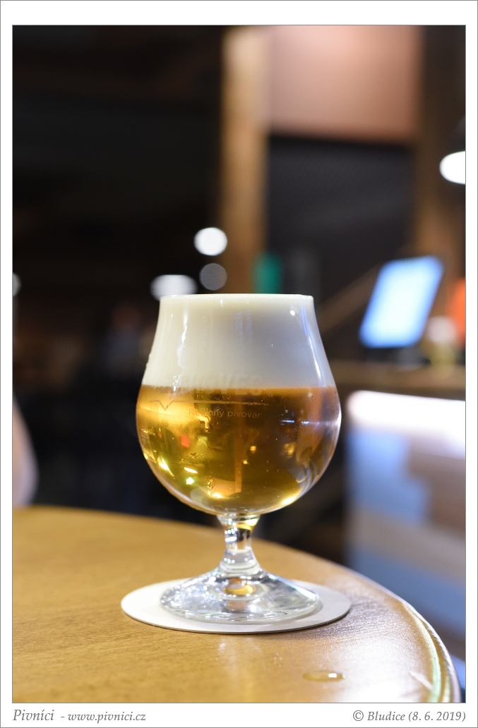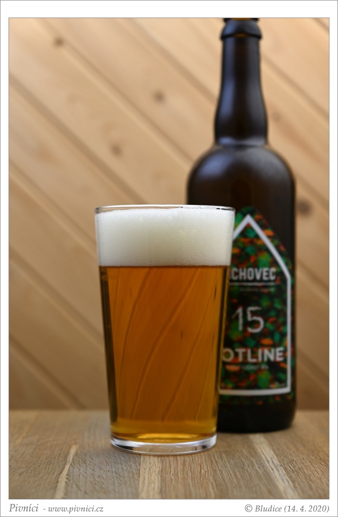 Zlatá barva, téměř čiré. Pěkná světlá pěna, dobře drží.Vůně (3,5 - velmi dobré):