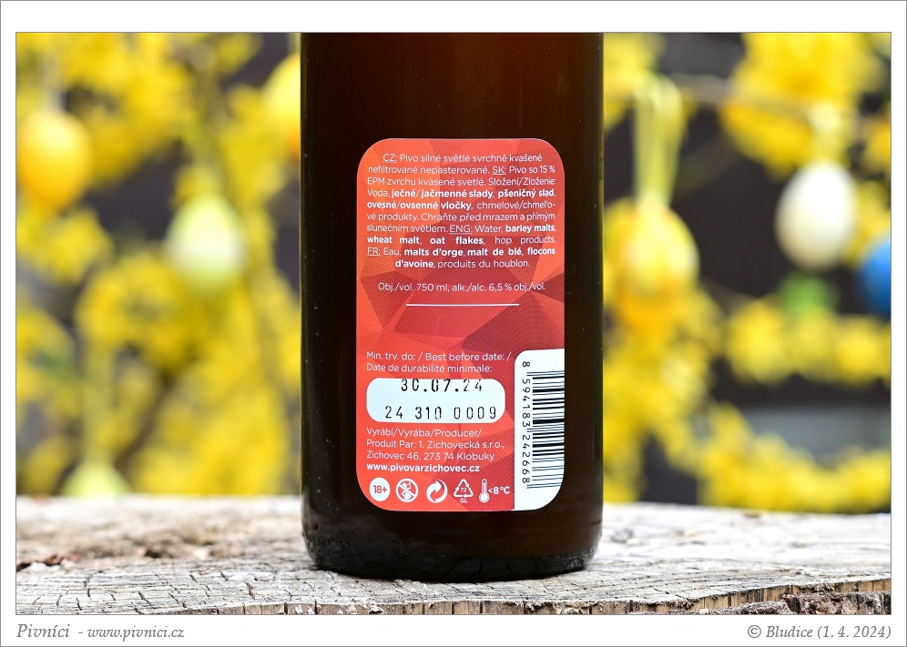 Zlatá barva, středně zakalené. Pěkná světlá pěna, celkem drží.Vůně (4 - výborné):