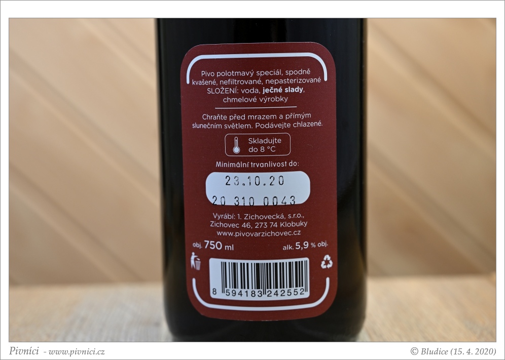 Chutné polotmavé pivo, velmi dobře se popíjí.Minimální trvanlivost: 22. dubna 2021