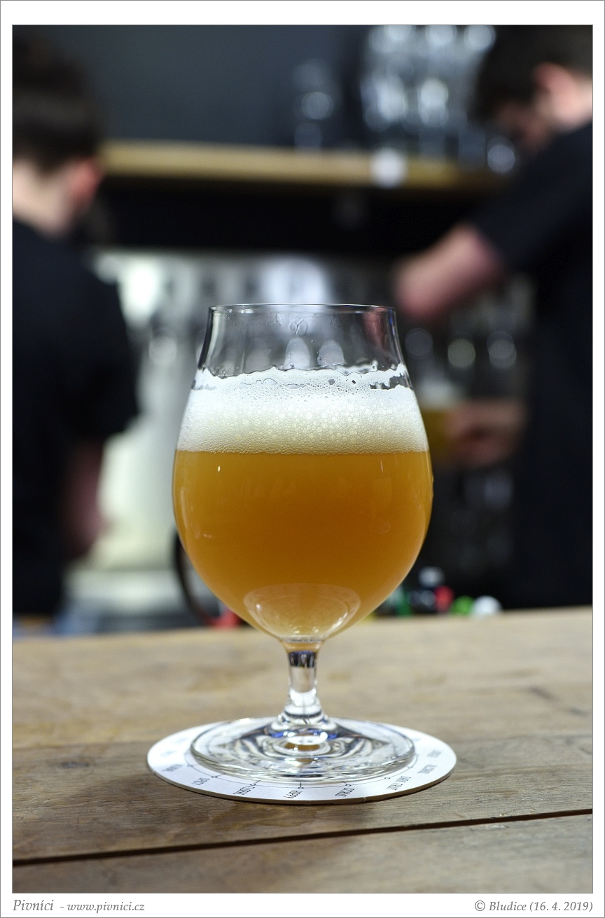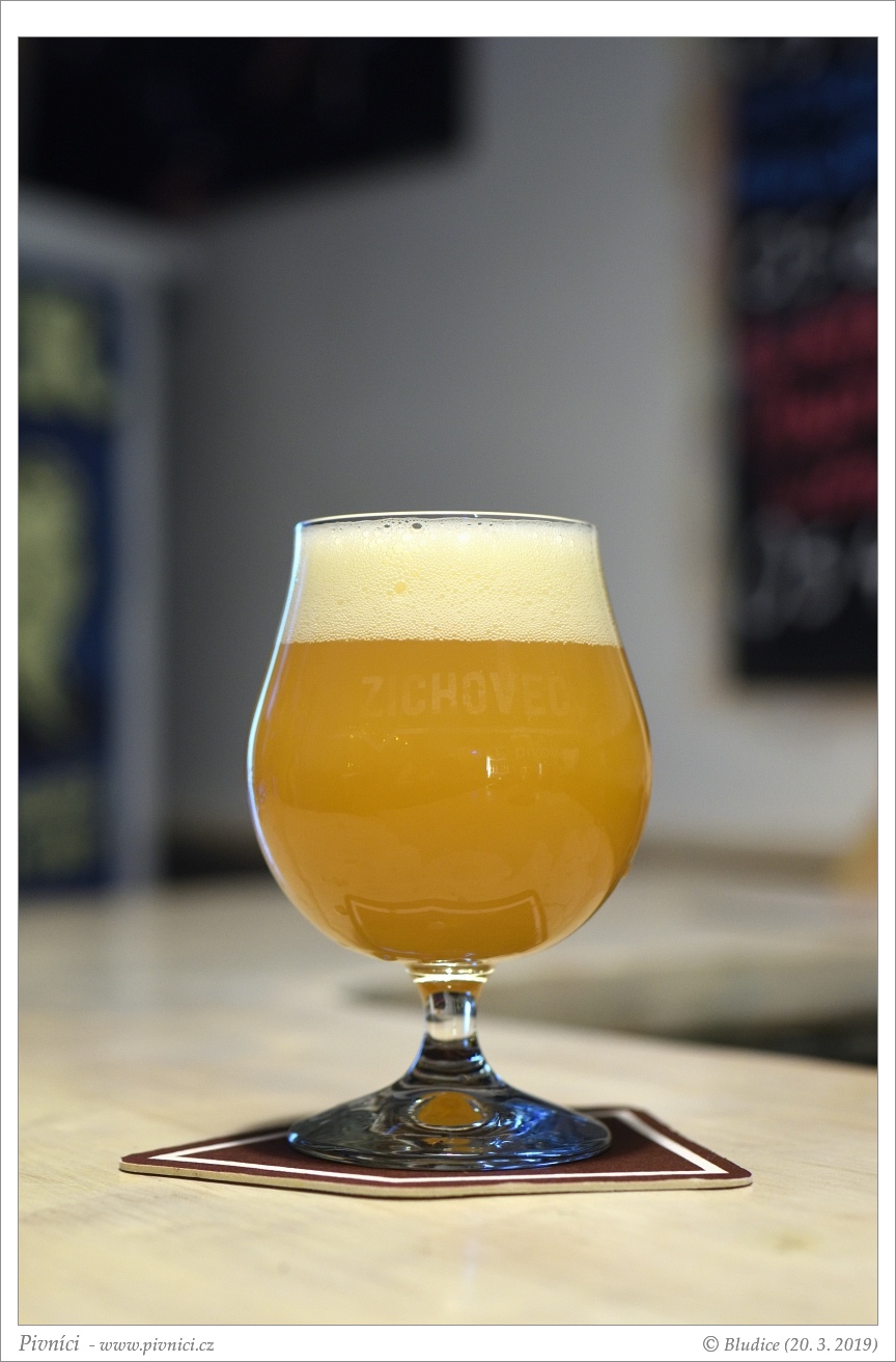 Zlatá barva, velmi zakalené. Pěkná světlá pěna, slušně drží.Vůně (3,5 - velmi dobré):