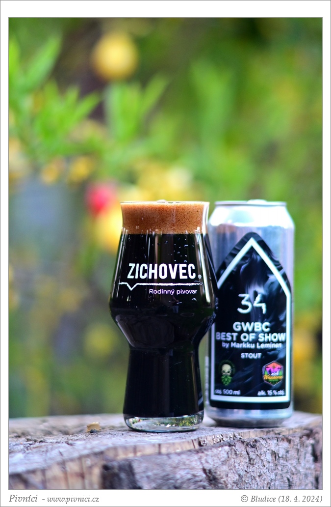 Ebenová až úplně černá barva, zdá se čiré. Pěkná temně béžová pěna, dobře drží.Vůně (4 - výborné):