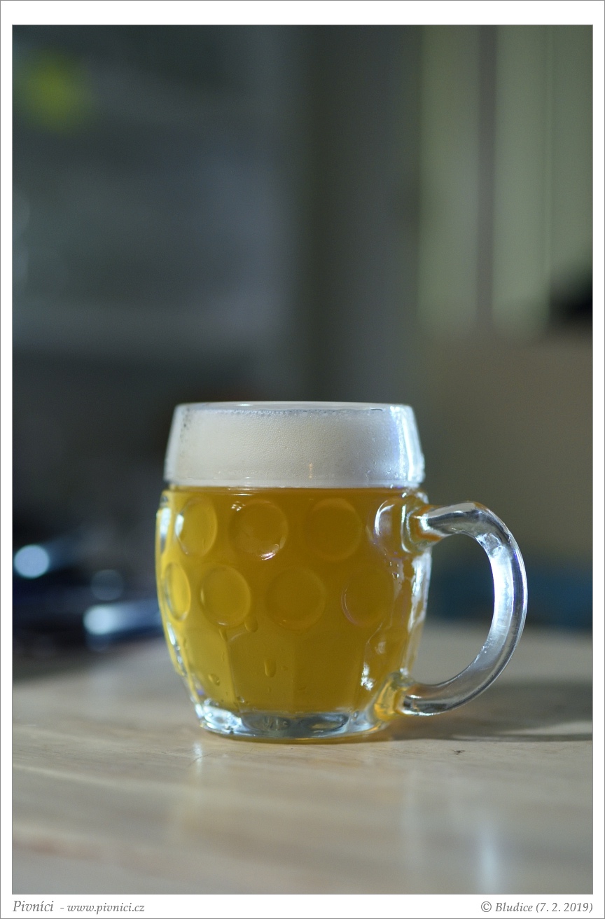 Zlatá barva, středně až více zakalené. Pěkná světlá pěna, dobře drží.Vůně (3,5 - velmi dobré):