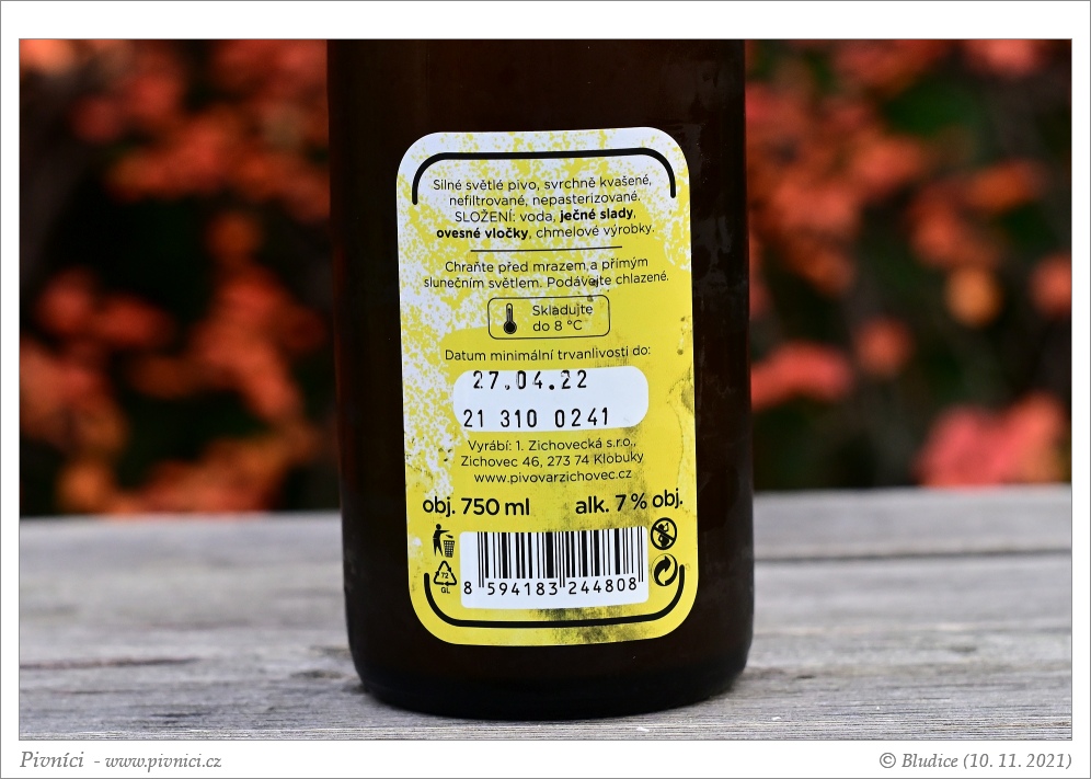 Barva slámová, silně zakalené. Nižší průměrně stabilní pěna.Vůně (3 - dobré):
