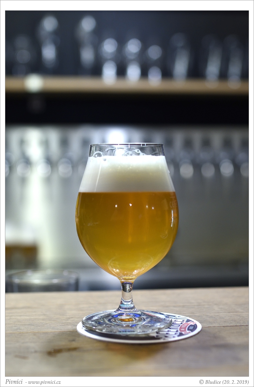 Zlatá barva, lehce zakalené. Pěkná světlá pěna, dobře drží.Vůně (4 - výborné):
