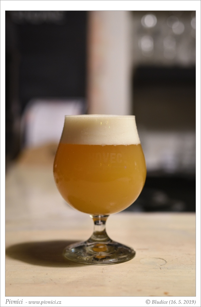 Zlatá barva, lehce až středně zakalené. Pěkná světlá pěna, dobře drží.Vůně (4 - výborné):